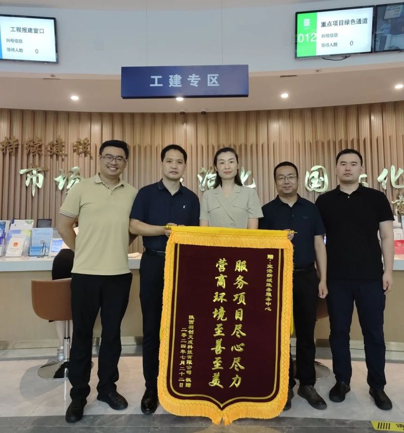 “這面錦旗送給你們,感謝你們對我們的幫助。”項目負責人為表達自己的感謝,特意將這面印“服務項目盡心盡力 營商環境至善至美”的錦旗送到了政務服務中心。