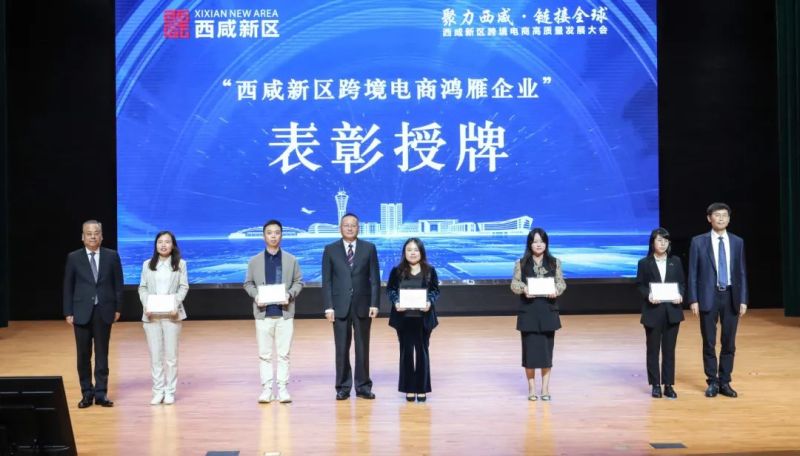 空港新城區(qū)內(nèi)企業(yè)陜西星空供應(yīng)鏈管理有限公司、陜西絲路港外貿(mào)服務(wù)有限公司、陜西眾維云創(chuàng)運(yùn)營服務(wù)有限公司被授予“西咸新區(qū)跨境電商鴻雁企業(yè)”牌匾。陜西西咸空港綜合保稅區(qū)跨境電商產(chǎn)業(yè)園被授予“西咸新區(qū)跨境電商產(chǎn)業(yè)園區(qū)”牌匾。