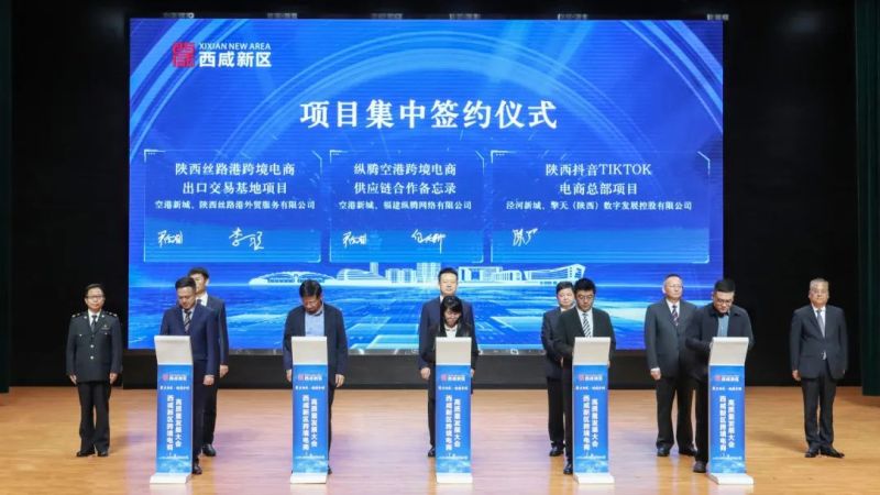 現(xiàn)場,空港新城與陜西絲路港外貿(mào)服務(wù)有限公司進(jìn)行簽約,雙方將在空港新城共同建設(shè)陜西絲路港跨境電商出口交易基地項(xiàng)目,同時,空港新城與福建縱騰網(wǎng)絡(luò)有限公司簽署縱騰空港跨境電商供應(yīng)鏈合作備忘錄,雙方將在海外倉儲、跨境物流等方面進(jìn)行深度合作。
