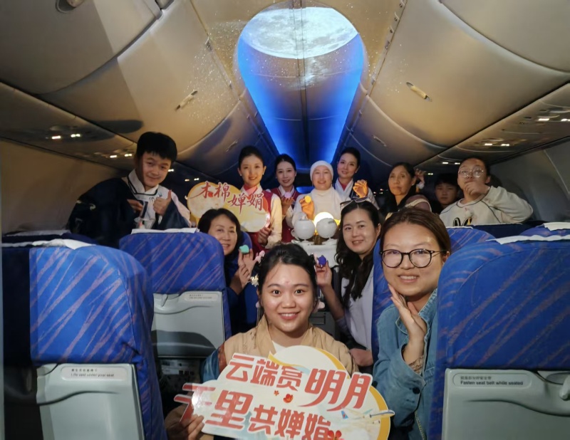 10月5日,中國南方航空在CZ8061(西安—阿拉木圖)“絲路云賞”品牌航線上開展國際首乘活動,推出“月滿云端,情系中秋”的主題航班。