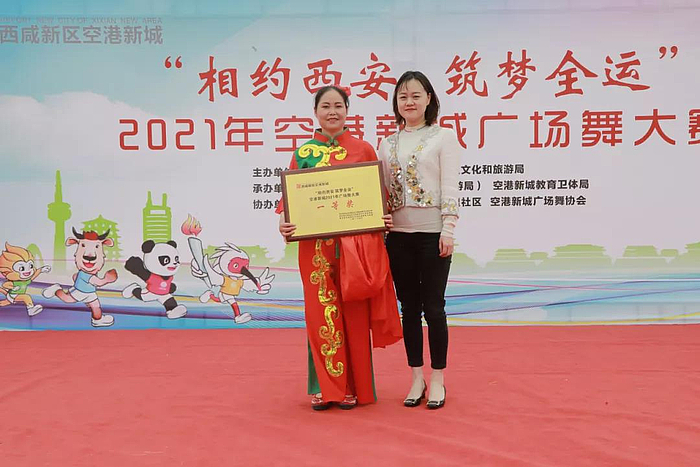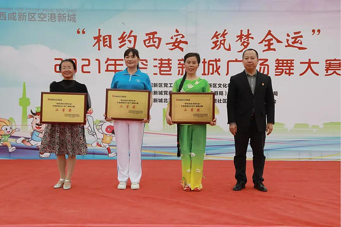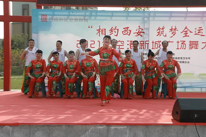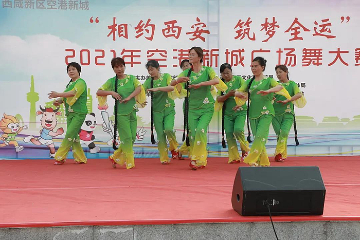 4月8日,在空港新城北杜街道陽光里社區廣場舞健身基地,以“相約西安 筑夢全運”為主題,由西咸新區黨工委宣傳部、西咸新區文化和旅游局、空港新城黨委宣傳部(文化和旅游局)、空港新城教育衛體局共同舉辦的2021年空港新城廣場舞大賽活動精彩上演。