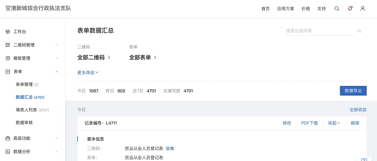 貨車司機只需掃描二維碼就可在手機上快速填寫司機個人基本信息、進港站點、日期時間、車牌號及核酸檢測情況等10項疫情排查的必要信息,這些信息在后臺自動生成數據,當日值班工作人員一目了然,不僅省去了逐一排隊手寫登記的時間,也減少了貨車司機與卡口執勤人員的近距離接觸,極大程度提高了工作效率。