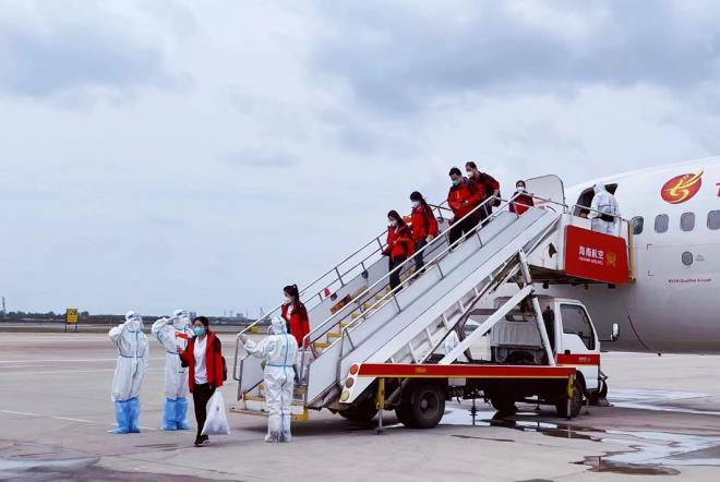 5月14日13時59分,搭載著陜西支援上海醫(yī)療隊的海航航空集團旗下長安航空9H8375包機航班平穩(wěn)降落在西安咸陽國際機場。陜西援滬首批178名醫(yī)務(wù)工作者平安返程。
