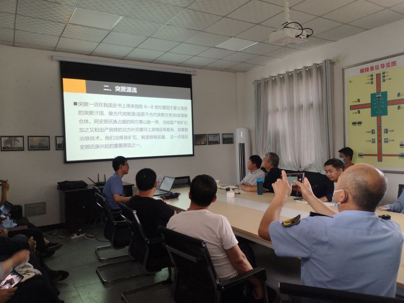 徐弛博士通過歷史文獻梳理、考古發現佐證脈絡清晰、形象生動地講解昭武九姓、粟特人、突厥源流與唐的發展關系問題,并就文物保護工作與基層一線人員進行了交流。本次培訓進一步提升了基層文博工作者的專業知識,尤其是對順陵館藏文物阿史那懷道與其妻安氏墓志知識進行了有效補充。順陵、北杜文管所、群眾文保員及省考古院秦漢考古隊約30余人參加活動。