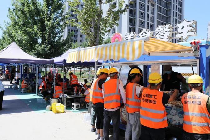 “以前吃飯要么在門口流動攤點對付兩口,要么就得走1里多路,現在好了,‘香小廚’移動餐車(吧)開到了工地門口,讓我們下班就能吃到新鮮飯菜。”剛剛下工的李師傅和工友們邊吃邊說道。