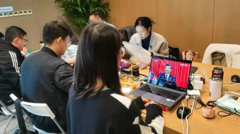 除了各級部門、單位之外,轄區各項目工地也積極組織黨員干部收聽收看二十大開幕盛況!