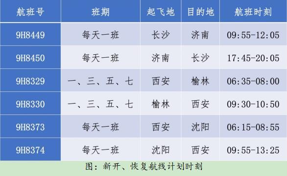 新開通的長沙—濟南航線計劃每天一班,西安—榆林航線恢復后計劃每周一、三、五、七各一班,西安—沈陽航線每天一班。目前,西安—阿勒泰航班機票價格990元起,長沙—濟南航班420元起,濟南—長沙航班360元起(以上價格均不含燃油附加費),旅客可根據自身需求在長安航空官網、公眾號以及其他授權渠道查詢購票。