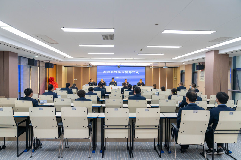 會上,陳亮局長和尚鋒檢察長代表雙方共同簽署了《健全工作機制加強檢稅合作框架協議》,并揭牌成立了“檢稅業務知識課堂”。雙方確定在“聯建共促強黨建、聯席會議暢溝通、聯合打擊涉稅犯罪、強化執法司法銜接、強化數據信息共享、強化檢稅人才共建”等六個方面建立溝通合作,明確了合作目標任務。
