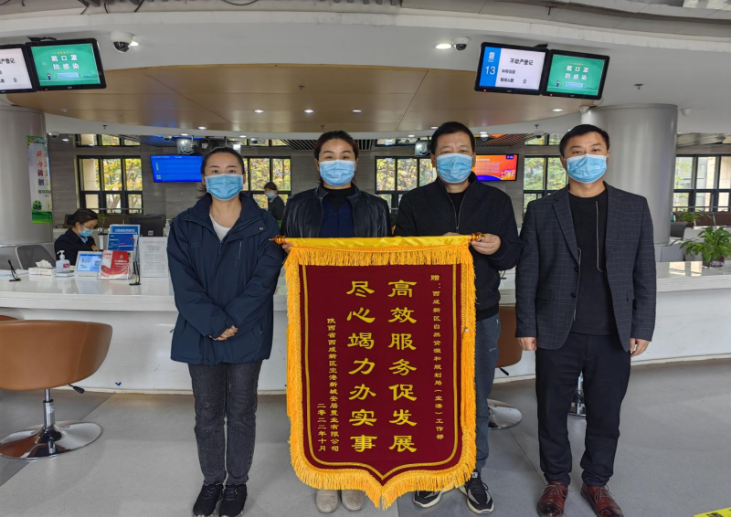 11月2日,陜西省西咸新區空港新城安居置業有限公司將一面印有“高效服務促發展 盡心竭力辦實事”的錦旗送到資源規劃工作部,對我部優化營商環境,高效服務企業表示感謝。