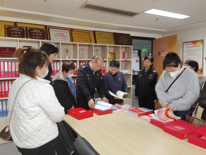在分局黨員活動室、黨建文化長廊、榮譽墻、理論學習園地等場所,調研組認真閱看了黨建工作資料,用心閱覽分局黨員干部上墻展示的《學習黨的二十大報告心得體會》,通過實地查看、聽取介紹、互相交流等方式,詳細了解黨建陣地建設、黨群活動、黨組織和黨員作用發揮等情況,充分感受分局“抬頭受教育、低頭思感悟”的濃厚黨建氛圍。