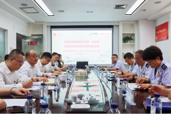 為夯實基層黨組織建設,促進征納關系和諧發展,近日,國家稅務總局西咸新區空港新城稅務局機關第一黨支部以及收入核算科、納稅服務科、稅政科、所得稅科的黨員代表和業務骨干與長安航空有限責任公司財務部黨支部開展了聯學共建活動。雙方黨員齊聚一堂,共同搭建稅企“連心橋”,助力黨建與業務雙融雙促雙提升??崭坌鲁嵌悇站贮h委委員、副局長田茂盛和長安航空有限責任公司黨委書記侯占發參加活動。