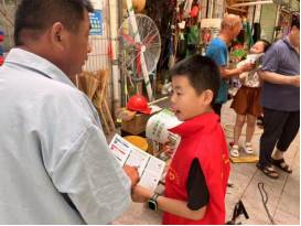 隨后,在執法隊員的帶領下,小隊員們正式“上崗”,對占道經營、違規停車、垃圾不分類等市容亂象進行糾正勸導,并通過發放宣傳彩頁的形式,向群眾普及垃圾分類、餐飲油煙治理相關知識。