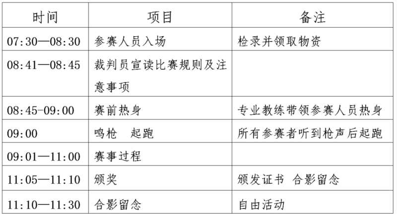 (二)凡在規定時間內跑完各項目全程的均發完賽獎牌;