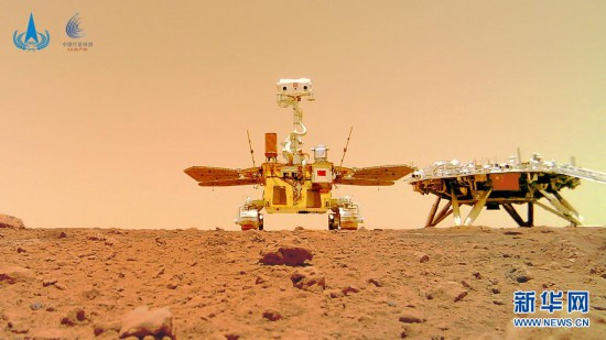 這是6月11日公布的由祝融號火星車拍攝的“著巡合影”圖。