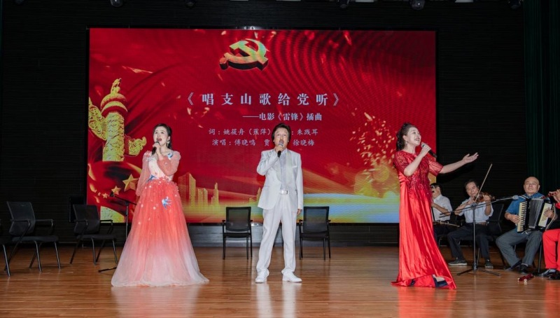 在新時代的征程上,空港新城正以昂揚姿態譜寫高質量發展新篇章。活動開場,研究會會長傅曉鳴攜女高音賈玲、徐曉梅共同演繹經典紅歌《唱支山歌給黨聽》為活動拉開序幕。《草原上升起不落的太陽》《紅星歌》等一首首經典紅歌在藝術家們的傾情演繹下,將紅色記憶與時代精神完美融合。特別是,由空港新城管委會副主任郭鵬作詞、傅曉鳴譜曲的原創歌曲《許你一個空港》成為亮點,這首為國際航空樞紐量身定制的作品,以男女聲對唱形式(傅曉鳴、徐曉梅)展現了空港新城“絲路新城”的開放姿態與發展愿景,以藝術形式展現了新城建設的壯美畫卷。當《我愛你中國》的旋律響徹全場,臺上臺下同聲高歌,用最真摯的情感表達對偉大祖國的深情禮贊。這場“文藝+理論”的視聽盛宴,通過紅色歌曲、書畫創作等群眾喜聞樂見的形式,讓紅色文化在藝術熏陶中浸潤心田,在情感共鳴中激發奮進力量。