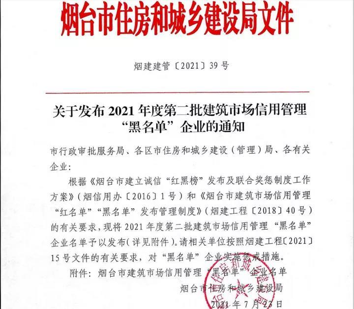 近日,煙臺(tái)市住房和城鄉(xiāng)建設(shè)局發(fā)布了2021年第二期建筑市場(chǎng)信用管理“黑名單”,本期有11家企業(yè)上榜,均為拖欠農(nóng)民工工資并造成大規(guī)模上訪事件被列入建筑市場(chǎng)“黑名單”。