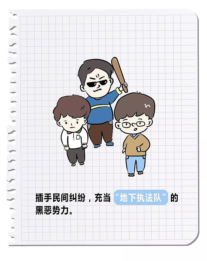 全國掃黑除惡專項斗爭,歷時3年,自2018年1月開始至2020年底結束??偹{圖為:2018年治標,2019年治根,2020年治本!“黑”是指黑社會性質的組織,“惡”是指惡勢力、惡勢力犯罪集團,下面的12張漫畫形象地說明了掃黑除惡。