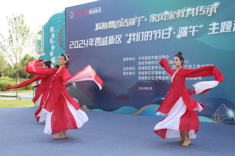 活動現場,古風古韻的國風舞蹈《書簡舞》、端午主題詩歌朗誦《屈原頌》以及秦腔經典唱段《三娘教子》等充滿傳統風情的民俗節目贏得了現場觀眾陣陣掌聲。