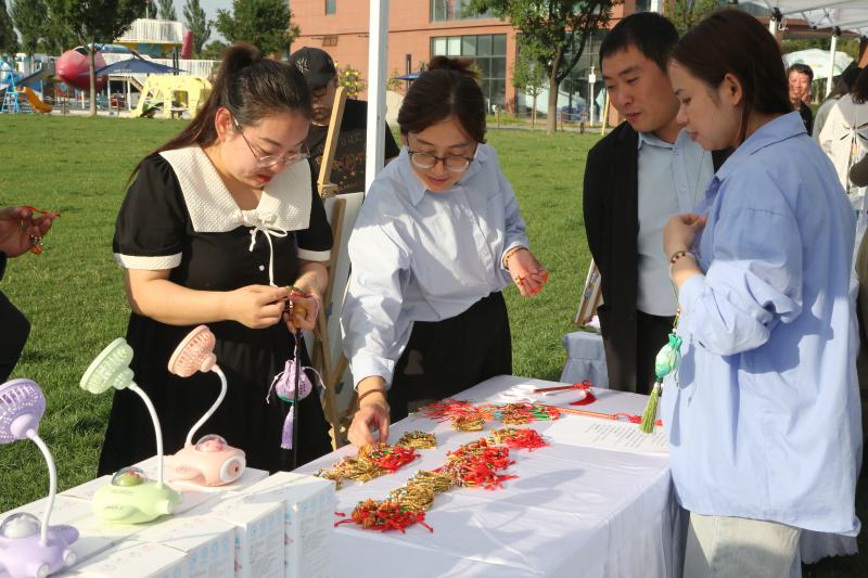 悠悠草香,人間芳華。在民俗體驗互動區,正在進行一場端午香囊手工DIY活動,大家親自動手制作,填充香料、彩布縫合、細線打結……不一會兒,一個個立體飽滿圓潤飽滿,寓意美好安康的端午香囊就展現在眼前,現場彌漫著艾草的清香味,伴隨著濃郁的民俗風情,格外沁人心脾。除此之外,現場還有各種各樣的傳統民俗體驗、手工DIY等文化活動,游客們沉浸其中,玩得不亦樂乎。
