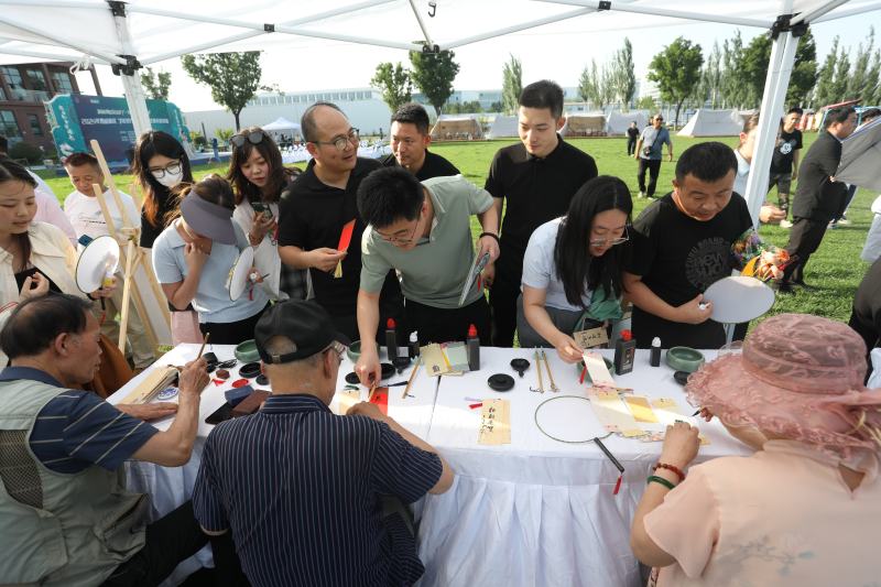 “寫的太好了!我在書簽上讓老師幫我寫了萬事順意四個字!是希望家人們身體健康、一切都好!”居住在附近的寧彤欣對書法家們的作品贊不絕口,書法區域駐足著不少群眾駐足圍觀,書法家們揮毫潑墨,為游客手寫書簽贈予端午祝福。