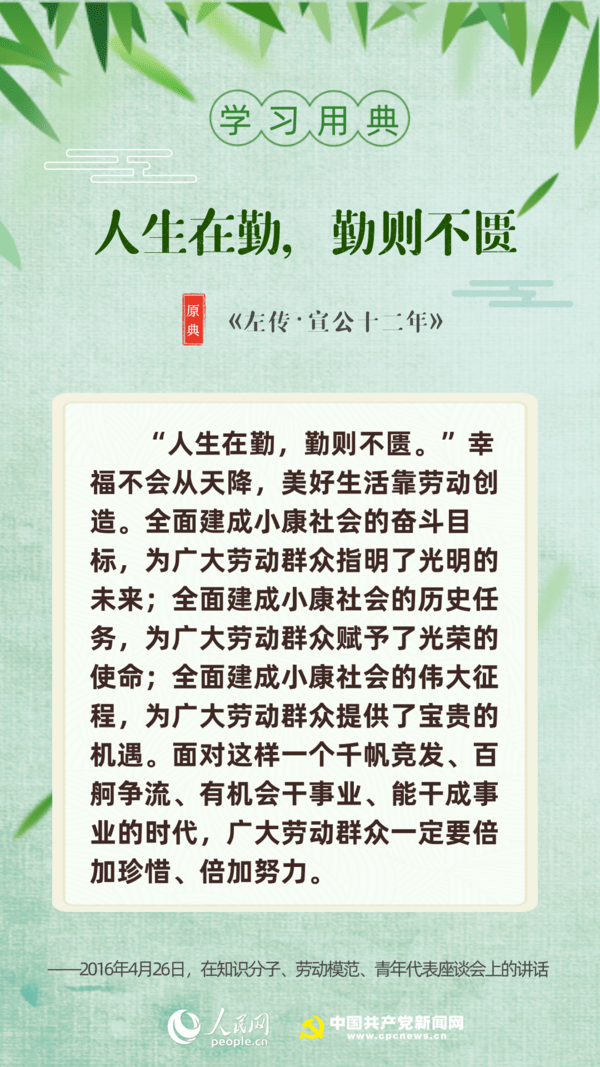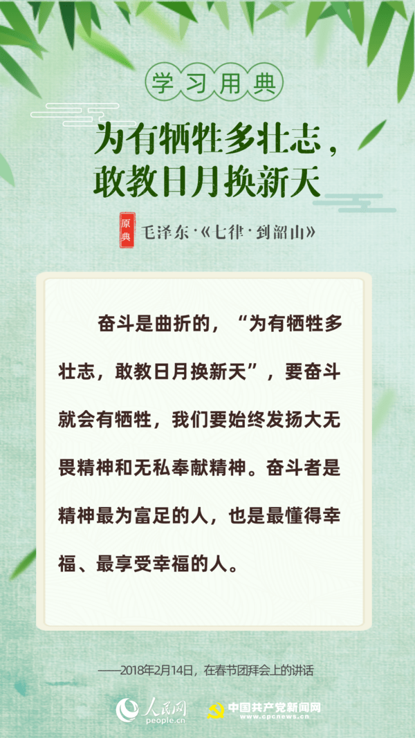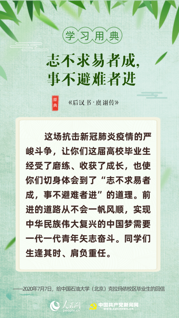 【編者按】“志不求易者成,事不避難者進。”近日,習近平總書記給中國石油大學(北京)克拉瑪依校區(qū)畢業(yè)生回信,對廣大高校畢業(yè)生提出殷切期望。“人生在勤,勤則不匱”“積土而為山,積水而為海”……近年來,習近平多次引用詩句典故,激勵包含廣大青年在內(nèi)的全黨全國各族人民拼搏奮進、埋頭苦干。正值“戰(zhàn)疫”“戰(zhàn)貧”關(guān)鍵時刻,人民網(wǎng)·中國共產(chǎn)黨新聞網(wǎng)與您一起回顧習近平講話中關(guān)于“奮斗”的10個名句。