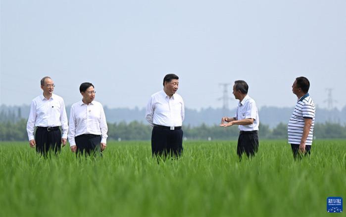 6月8日,中共中央總書(shū)記、國(guó)家主席、中央軍委主席習(xí)近平在四川考察。這是8日上午,習(xí)近平在眉山市東坡區(qū)太和鎮(zhèn)永豐村高標(biāo)準(zhǔn)水稻種植基地考察,了解水稻試驗(yàn)育種和種植推廣情況。新華社記者 謝環(huán)馳 攝