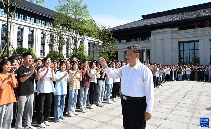 6月8日,中共中央總書(shū)記、國(guó)家主席、中央軍委主席習(xí)近平在四川考察。這是8日下午,習(xí)近平在宜賓學(xué)院考察時(shí),向師生們揮手致意。新華社記者 李學(xué)仁 攝