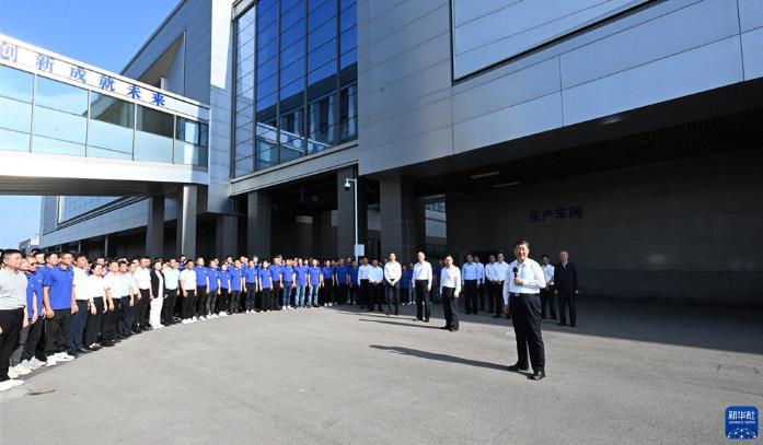 6月8日,中共中央總書(shū)記、國(guó)家主席、中央軍委主席習(xí)近平在四川考察。這是8日下午,習(xí)近平在宜賓市極米光電有限公司車間外廣場(chǎng),同企業(yè)員工們親切交流。新華社記者 李學(xué)仁 攝