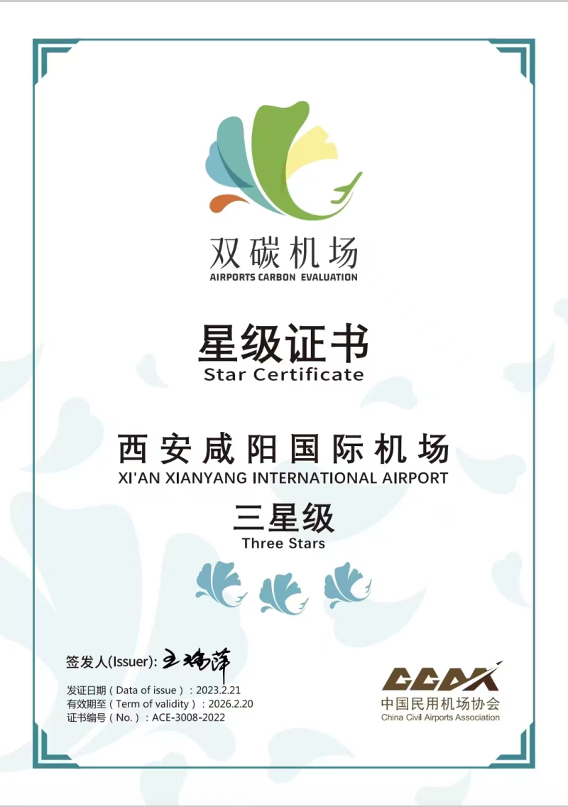 一是協同西安咸陽國際機場打造“綠色機場”新標桿。推動成立西安咸陽國際機場環境保護委員會,夯實機場區域內企業落實環境保護主體責任。并以機場擴建工程為契機,系統謀劃實施建立智慧能源管理系統實現水電氣冷熱的高效利用、建設分布式光伏發電系統、岸電設施等實現清潔能源使用等多項環境友好項目,樹立起全國綠色機場建設新標準,并榮獲國內首批“雙碳機場”三星級認證稱號。