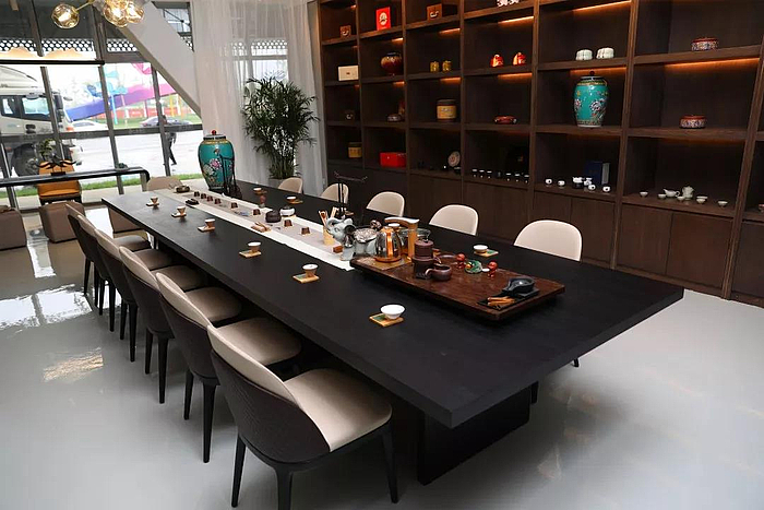 茶藝區窗明幾凈古色古香,淡淡茶香隨裊裊煙氣散開。
