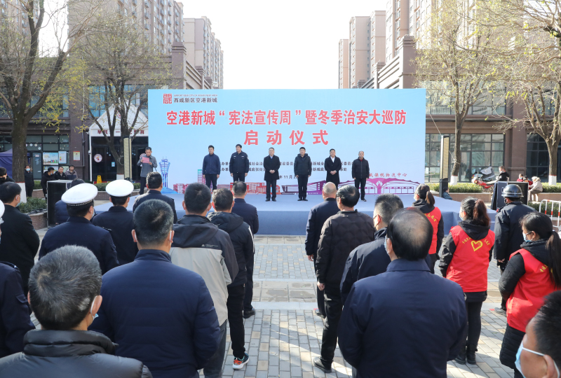 為深入推進(jìn)法治社會(huì)建設(shè),弘揚(yáng)憲法精神,全面提升空港平安建設(shè),11月29日,空港新城“憲法宣傳周”暨冬季治安大巡防啟動(dòng)儀式在底張街道幸福里社區(qū)隆重舉行,空港新城黨委委員、管委會(huì)副主任胡新建出席并講話。