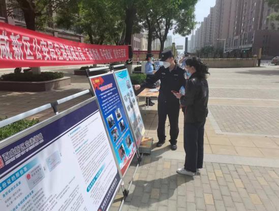 為扎實推進空港平安建設工作,營造和諧穩定的社會環境,增強轄區群眾反扒防扒、防電信網絡詐騙、反邪防邪意識,宣傳公安便民利民措施,提高廣大人民群眾對平安建設的知曉率和滿意度,4月27日,西咸新區公安局空港新城分局組織業務大隊民輔警走進幸福里社區黨群服務中心廣場開展平安建設宣傳活動。