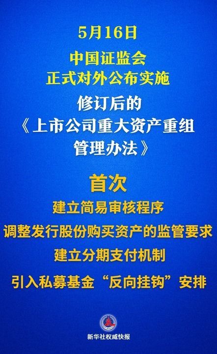 5月16日,資本市場又一重磅新規落地——中國證監會正式對外公布實施修訂后的《上市公司重大資產重組管理辦法》。