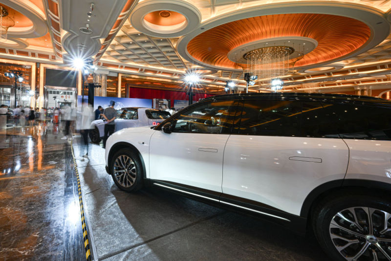 在位于海口的海南國際會展中心,人們在“2025海南國際車展暨海口市新能源汽車下鄉(xiāng)活動”上參觀(2025年5月2日攝)。新華社記者 蒲曉旭 攝