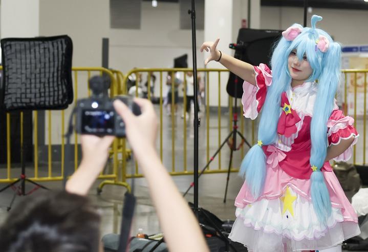 在上海舉行的2025年中國國際動漫游戲博覽會上,扮裝者在攝影區(qū)拍照(7月4日攝)。新華社記者 王翔 攝