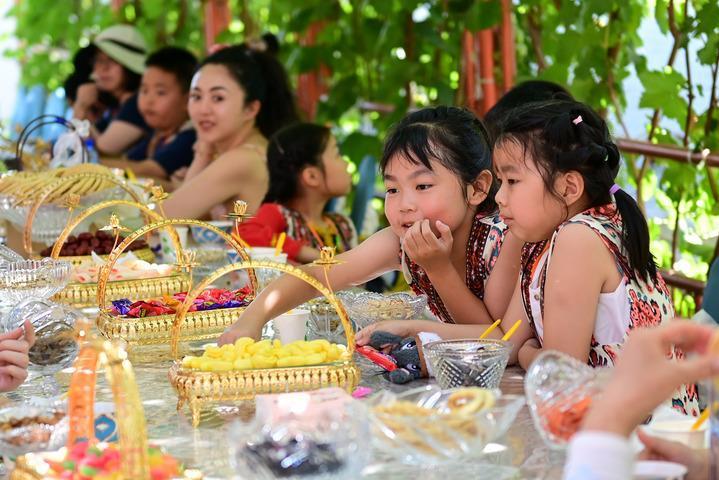游客在新疆伊犁哈薩克自治州伊寧市伊犁老城喀贊其文化旅游區(qū)家訪點品嘗當(dāng)?shù)孛朗常?月23日攝)。新華社記者 丁磊 攝