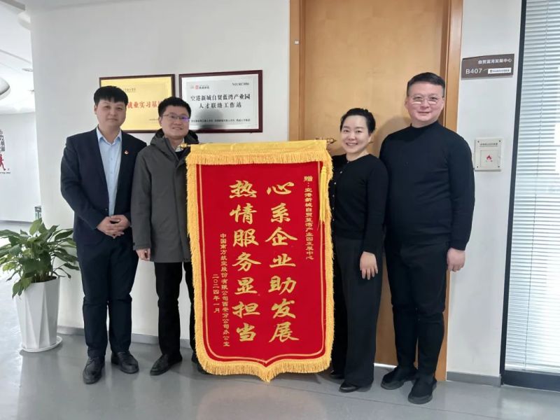 近日,中國南方航空股份有限公司西安分公司(以下簡稱“南航西安分公司”)綜合保障部不動產運營室主任張靜宇將一面印有“心系企業助發展 熱情服務顯擔當”的錦旗交到了自貿藍灣發展中心工作人員手中,對他們高效、細致的服務表示感謝。