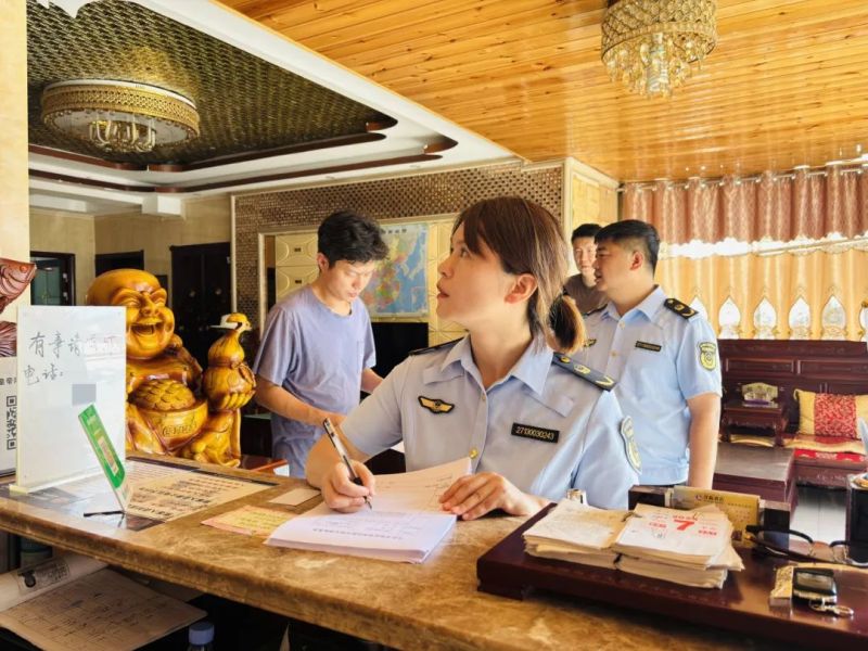 在檢查過程中,工作人員主動向商家、旅客等進行普法宣傳,向民宿從業人員宣發“行業合法經營提醒函”,在民宿張貼“監督投訴信息公示牌”,并向旅客宣傳安全出行知識,引導其安全、規范乘車,營造放心消費、放心旅游的市場環境,進一步提升游客的體驗感和滿意度。此外,還積極引導在機場運營的出租車、長途客車、網約車平臺及其駕駛員,不斷提升服務質量,規范運營行為,共同營造文明和諧的機場運營氛圍。