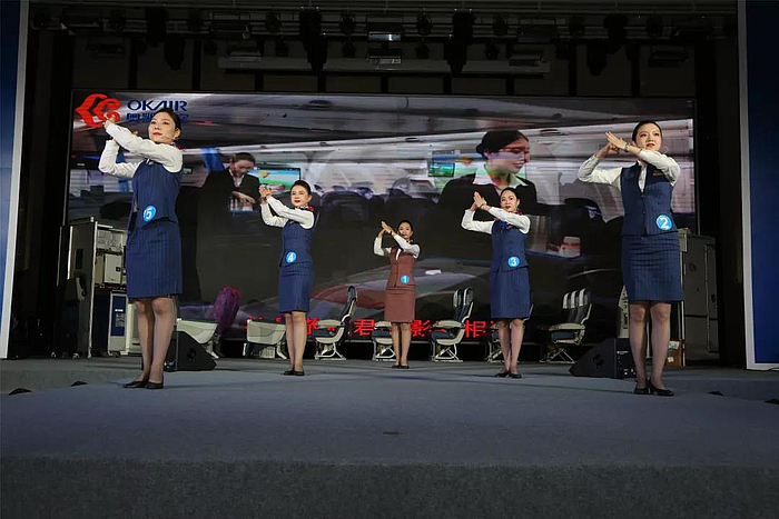 來自東方航空、南方航空、首都航空、長安航空、四川航空、深圳航空、長龍航空、幸福航空和奧凱航空的9家航企代表隊共45名乘務員登臺競技,展示了客艙安全、應急處置、客艙服務等內容,精湛的業務技能和優秀的服務品質贏得了現場評委和觀眾的一致好評。