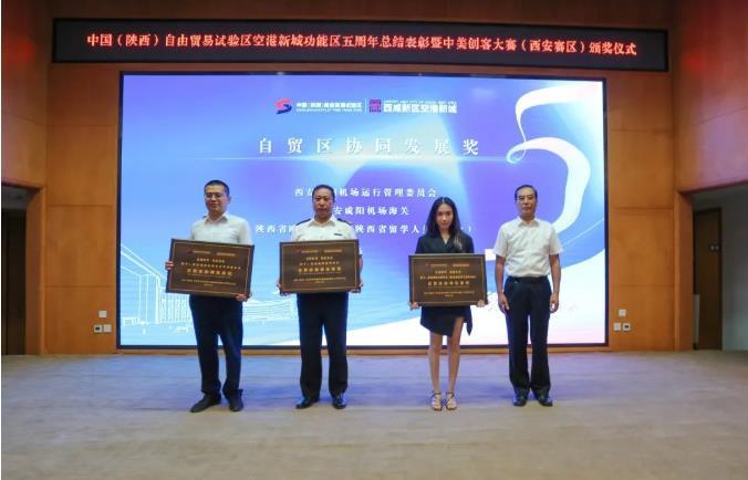 6月24日,空港新城組織召開中國(陜西)自由貿易試驗區空港新城功能區五周年總結表彰暨中美創客大賽(西安賽區)頒獎儀式。省商務廳黨組成員、副廳長、省自貿辦副主任翟北秦,西安市商務局黨組成員、陜西自貿試驗區西安管委會專職副主任李群剛,空港新城黨委副書記、管委會副主任胡新建,西安咸陽機場海關黨委書記、關長齊波,空港新城黨委委員、管委會副主任楊博,西安咸陽國際機場運行管理委員會執行副主席、西北地區空中交通管理局局長助理蘇普銘,陜西省人民對外友好協會秘書長班輝等參加活動。