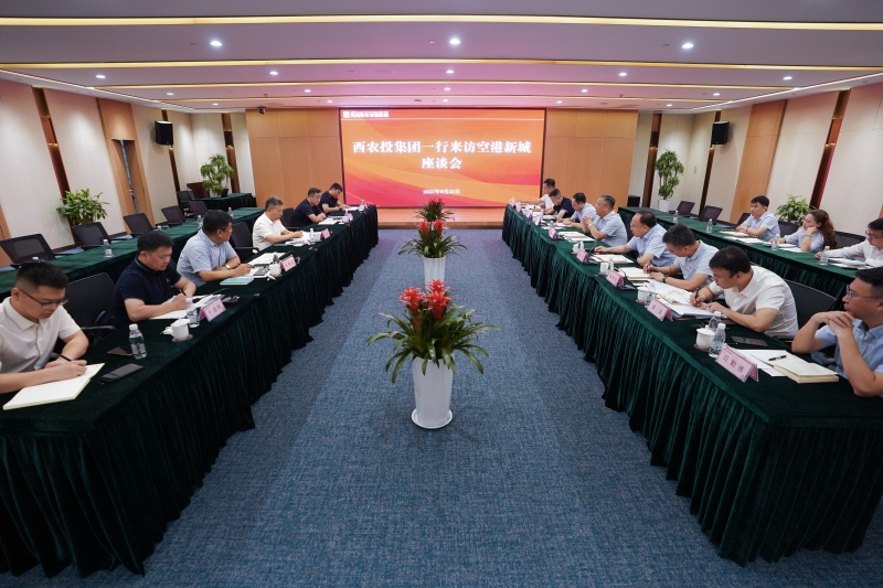 8月23日,西安農業投資集團有限公司黨委書記、董事長成斌一行來訪空港新城??崭坌鲁屈h委書記、管委會主任張蔚會見并座談,空港新城黨委副書記劉軍參加。