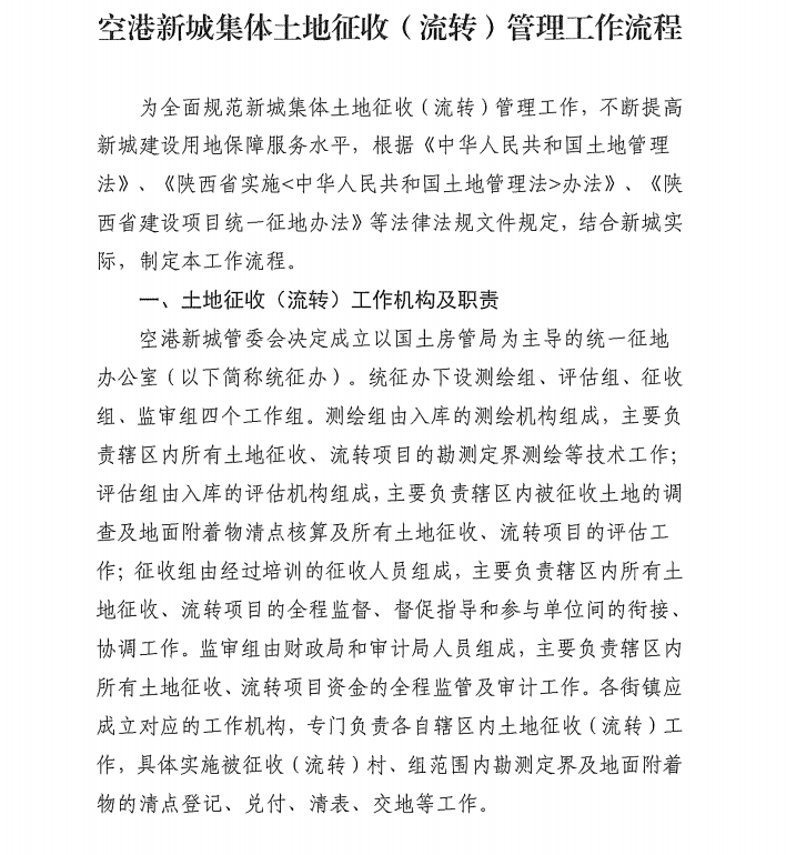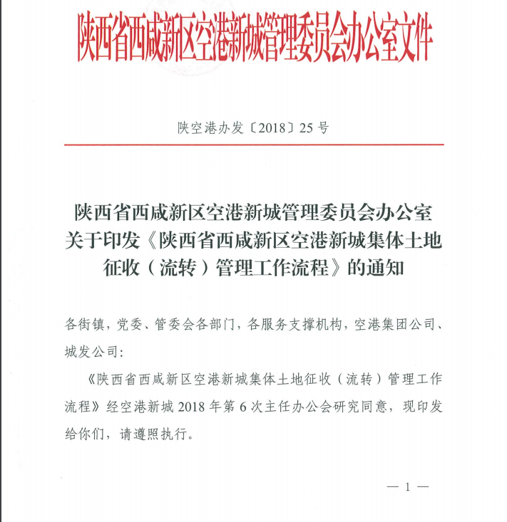 關于印發《陜西省西咸新區空港新城集體土地征收(流轉)管理工作流程》的通知