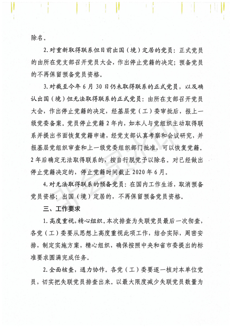 關于印發《失聯黨員規范管理和處理工作方案》的通知