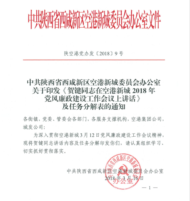 關于印發《賀鍵同志在空港新城2018年黨風廉政建設工作會議上講話》及任務分解表的通知.PDF