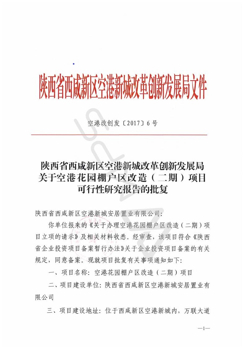關(guān)于空港花園棚戶區(qū)改造(二期)項(xiàng)目可行性研究報(bào)告的批復(fù)